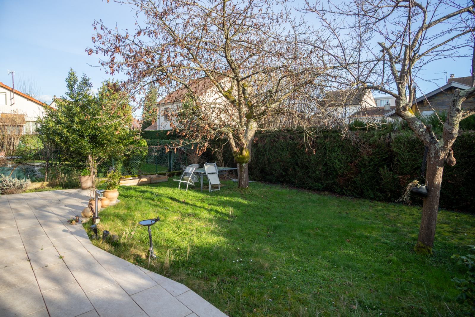 Montesson Centre, quartier résidentiel proche Chatou, au calme absolu, écoles et commerces à proximité (crèche, maternelle, primaire, collège). Maison non mitoyenne composée d'une entrée, cuisine ouverte équipée sur salle à manger, séjour lumineux et traversant avec cheminée, accès de plain-pied sur la terrasse et le jardin, chambre, salle d'eau. A l'étage, deux chambres dont une avec bureau attenant, salle de bains. Sous-sol total avec garage, cave et buanderie. Beau jardin au calme et bien exposé.