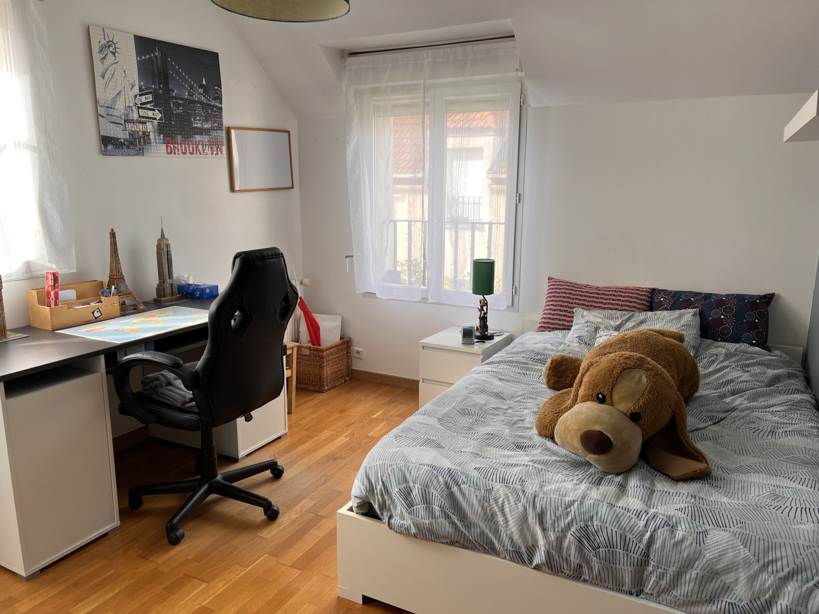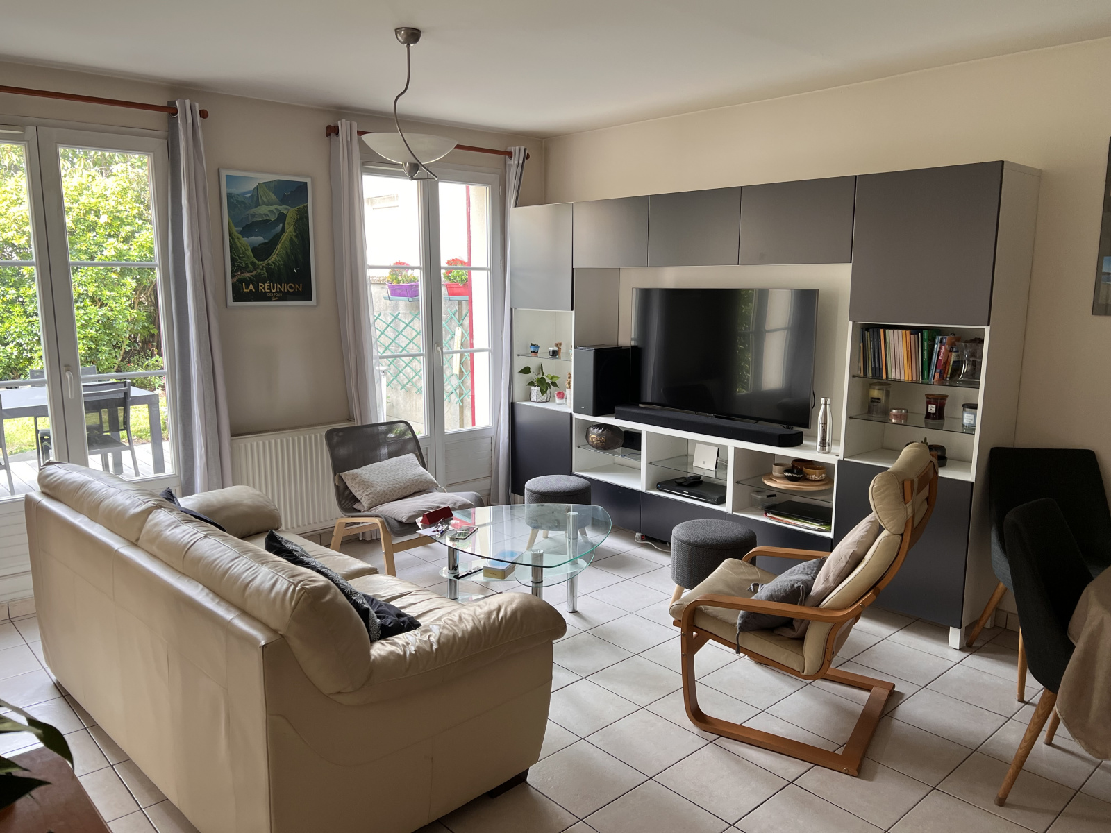 Montesson Centre, maison récente de 2007 de 106 m² au sol dans un ensemble privé et sécurisé, proche du centre-ville, des écoles et des transports. Elle se compose d'une entrée, cuisine aménagée et équipée, pièce de vie donnant sur terrasse et petit jardin. A l'étage, trois chambres avec placards, salle de bains, salle d'eau. Combles aménagés en grand bureau (16 m² au sol). Un garage fermé avec buanderie, sous-sol partiel aménagé et une place de parking viennent compléter ce bien. Bon état général, chauffage individuel au gaz.