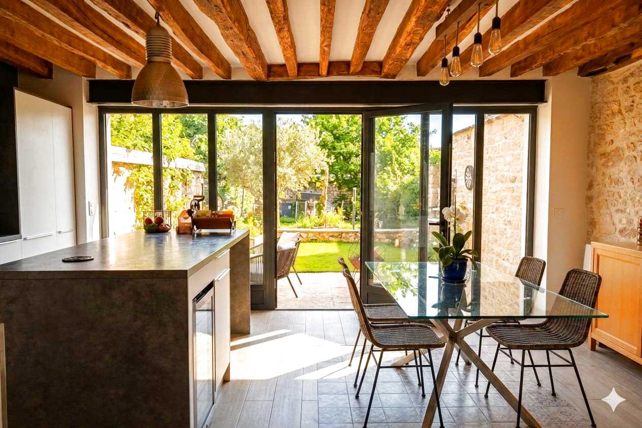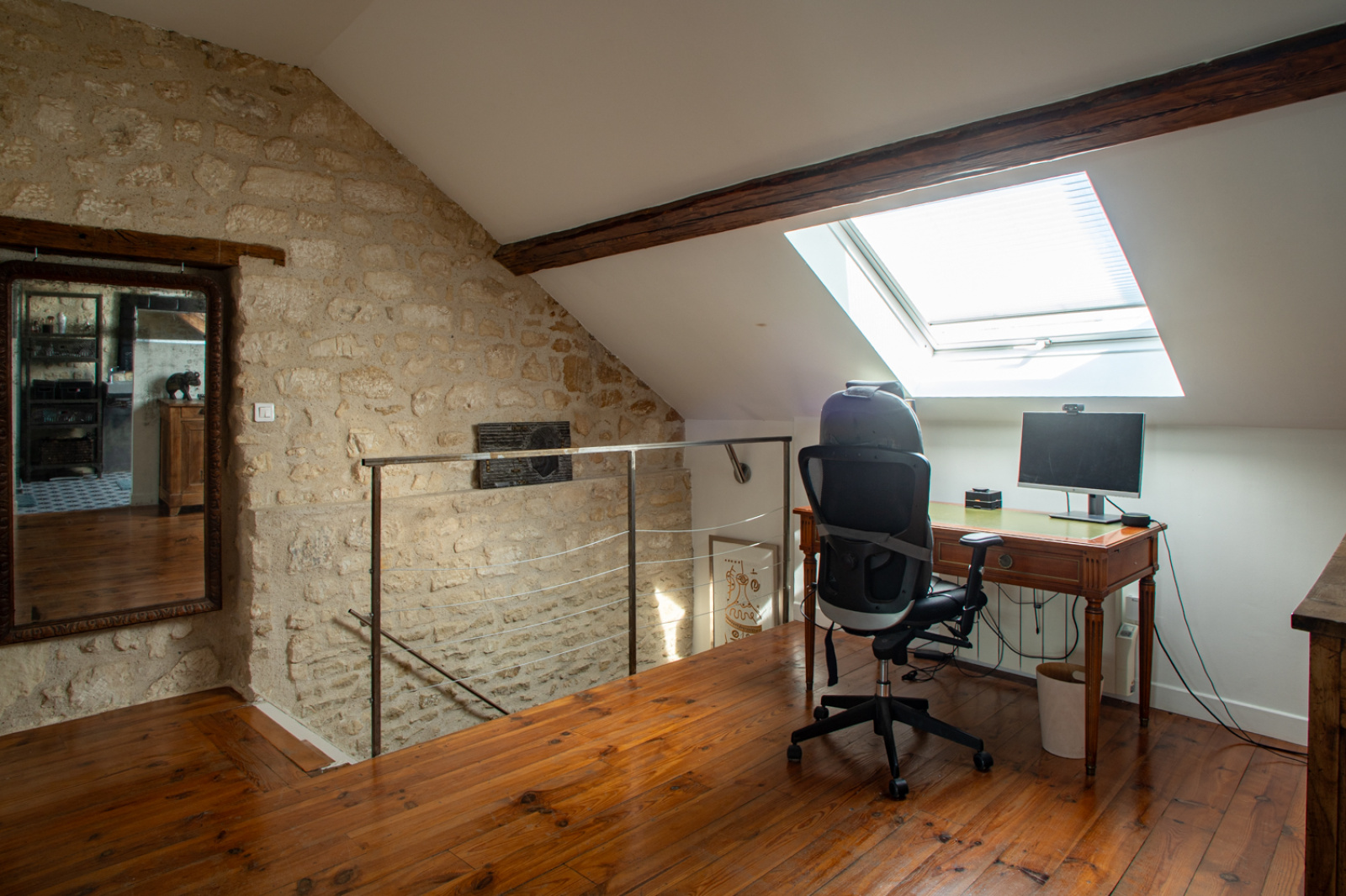 Montesson Centre, au coeur du village et au calme absolu. Maison de caractère entièrement rénovée offrant volumes et luminosité, Le rez-de-chaussée de 60 m² s'organise autour d'un salon avec cheminée et une spacieuse cuisine complètement équipée ouverte sur la salle à manger. Accès de plain-pied à la terrasse et au jardin à l'abri des regards. Au premier étage, 3 belles chambres, une salle de bains avec baignoire et douche. Le dernier niveau nous offre un espace télétravail, une salle d'eau, buanderie, dressing et une grande chambre de 25 m². Deux greniers et une belle cave voûtée offrent des solutions de rangements. Cour pavée avec stationnement pour une voiture et garage à vélos. Le charme de l'ancien a été préservé avec soin (pierres, poutres apparentes, matériaux nobles), tout en bénéficiant d'aménagements contemporains. L'agencement optimisé permet de profiter pleinement de chaque espace dans une atmosphère chaleureuse et apaisante.